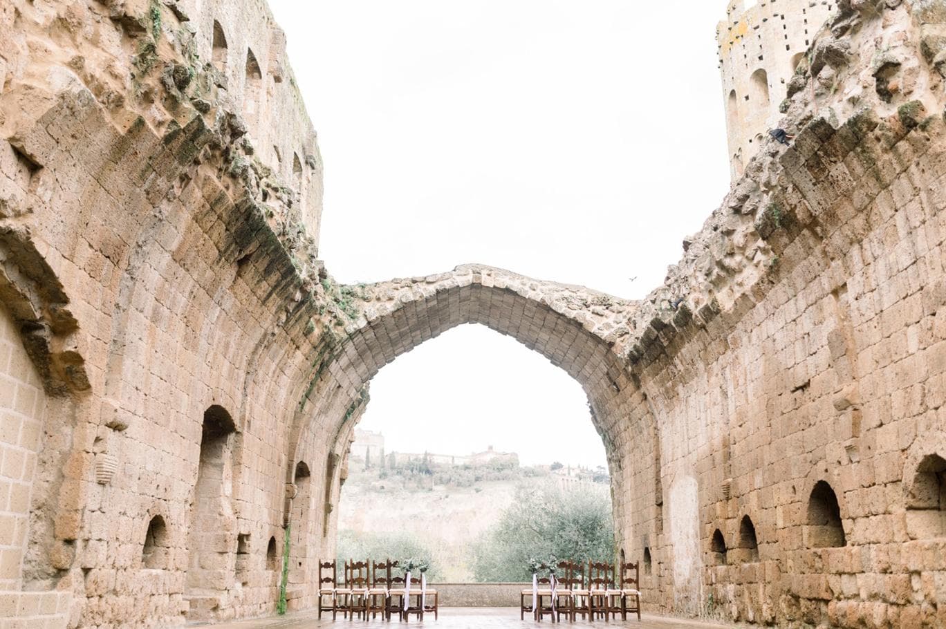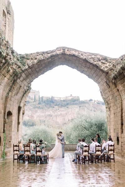 You can celebrate your Catholic wedding in the XI century Church, embellished with precious marble floor, or if you wish for a civil ceremony, then the magnificent Gothic stone arch, framing the view to the tufa rock of Orvieto, will suit as an unblemished location.
