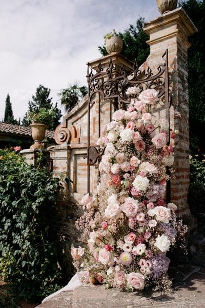 Peonies and roses were the perfect floral frame for this romantic wedding ceremony in Umbria.