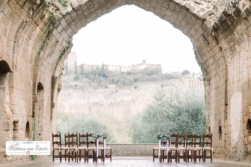 La Badia di Orvieto is the perfect spot for a romantic wedding. You can celebrate your Catholic wedding in the XI century Church, embellished with precious marble floor.