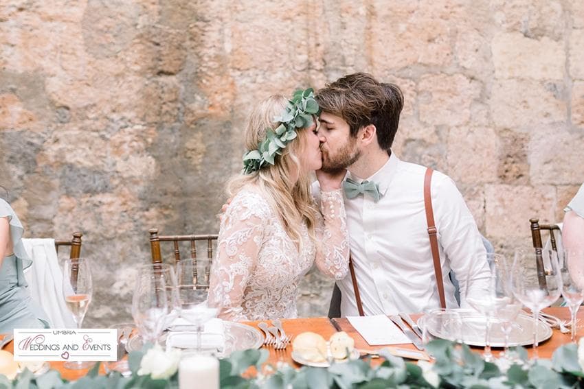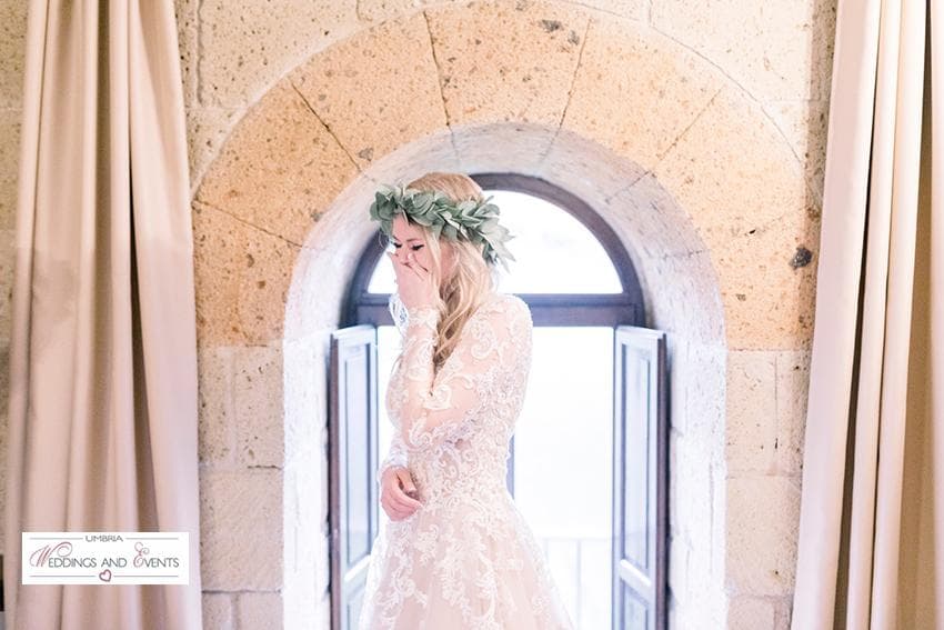 The couple chose this wedding venue in Umbria because of the love of the Bride for olive leaves and because this location epitomizes Italian charm and romance.